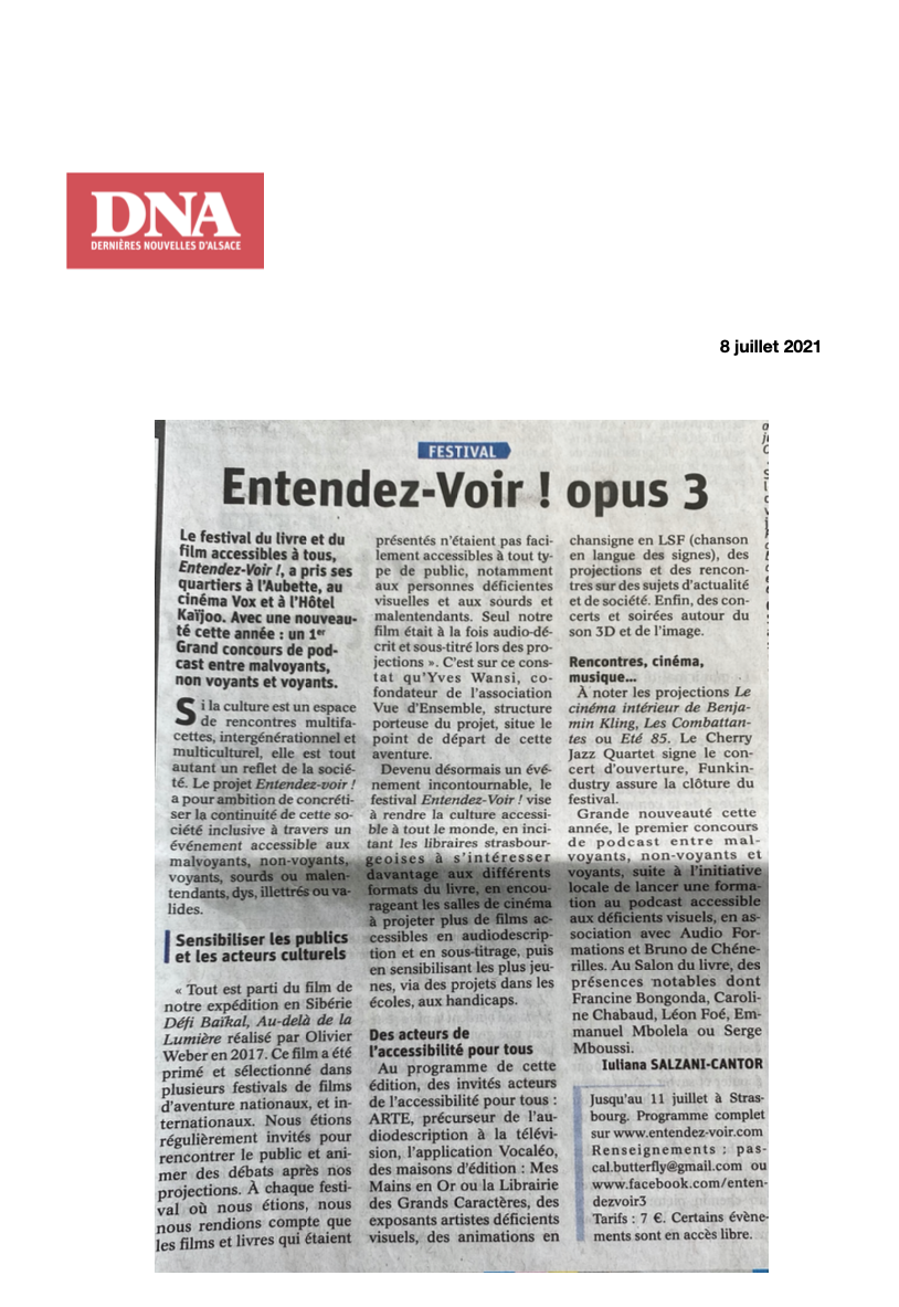 Le festival ENTENDEZ-VOIR! présente sa 3ème édition suite à la dynamiquesuscitée ces deux dernières années et des évolutions rapides de l’écosystèmeliées aux adaptations du livre et du film et de la sensibilisation du public.